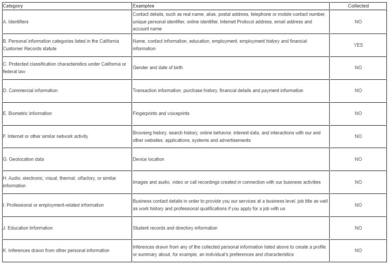 We may also collect other personal information outside of these categories instances where you interact with us in-person, online, or by phone or mail in the context of: